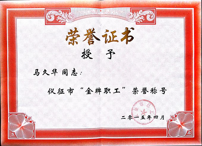 五一前夕,仪征市总工会召开专题会议,对授予的多项先进集体和先进个人进行表彰,市疾控中心马久华同志被授予“金牌职工”荣誉称号。