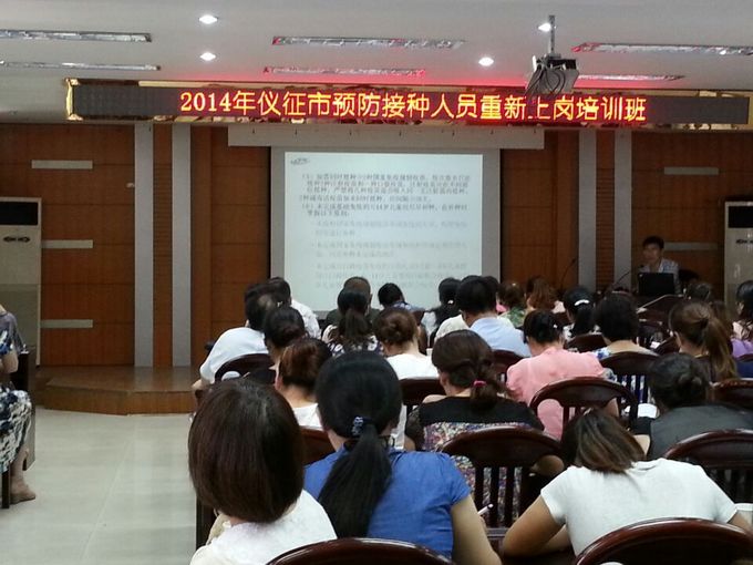 7月21日、24日,仪征市疾控中心分两批对从事预防接种的工作人员进行重新上岗培训,全市计划免疫门诊和医院产房等202名接种人员参加培训。