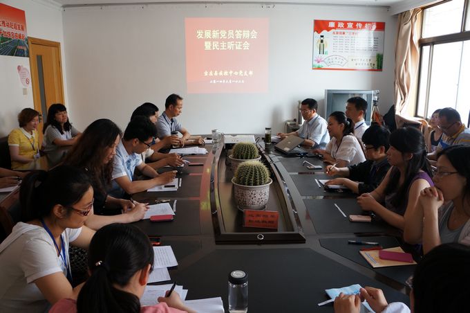 为了发挥基层党组织的核心作用,增强党组织工作的透明度,宝应县疾控中心党支部于2014年6月12日在中心二楼会议室召开了“发展新党员答辩会暨民主听证会”。该中心党支部委员、党员代表及群众代表共计23人参加。