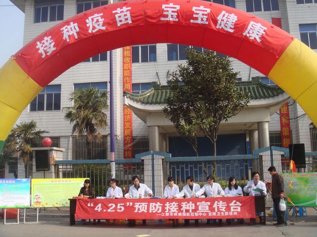 4月25日是第26个“全国儿童预防接种宣传日”,今年的宣传主题为 “接种疫苗,宝宝健康”。江都市疾控中心联合宜陵镇卫生防保所在宜陵镇开展宣传活动。江都市疾控中心主任吴志明到场参与。