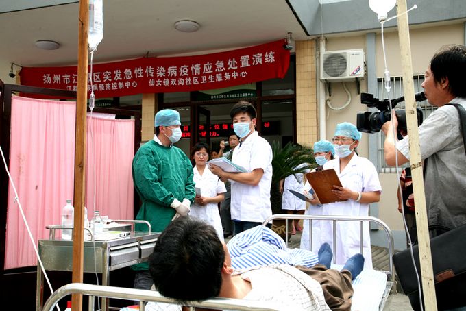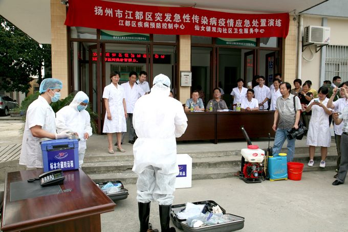 7月5日下午,江都区疾控中心联合仙女镇双沟社区卫生服务中心组织模拟传染病突发疫情的卫生应急处置演练。区、镇、村三级20余名卫生专业人员参加演练,区疾控中心吴志明代主任担任本次演练的总指挥,区卫生局刘剑副局长对演练全过程进行监督。