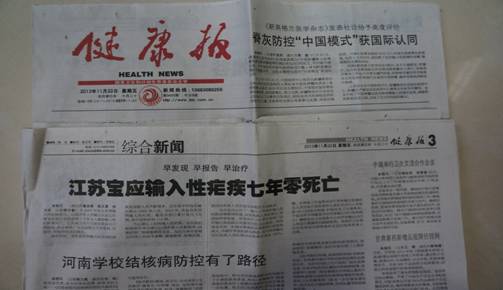近日,《健康报》(11月22日三版头条)刊登了宝应县疾控中心疟疾防治工作的宣传报道。