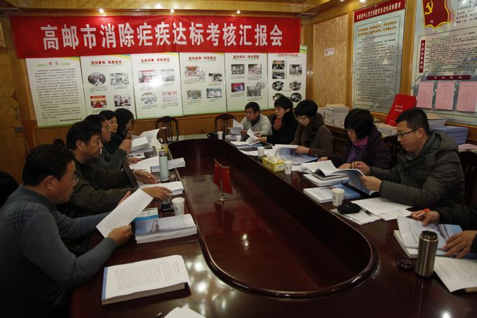 12月11日,江苏省人民政府血地防领导小组办公室对高邮市消除疟疾工作进行了考核验收,扬州市卫生局副局长尹亮、高邮市副市长钱富强、扬州市血地办副主任高扬、高邮市卫生局局长周建峰等参加活动。