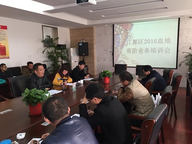 为认真贯彻落实省、市血防工作会议精神,3月28日,江都区血防办在区疾控中心北三楼会议室,召开全区2016年血地寄防业务培训会,全区各镇卫生院分管院长和血防医生共30多人出席会议。