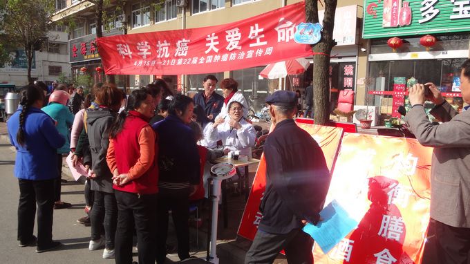 4月15日,江都区疾控中心和仙女社区卫生服务中心在云峰社区城市花园广场联合开展宣传活动。同时利用江都区“市民健康素养百场专家宣讲进社区”的活动平台邀请了区人民医院肿瘤科田广玉主任在北苑社区进行了肿瘤防治知识讲座。活动现场设咨询台进行健康生活方式指导并发放8种类型的肿瘤防治知识宣传单和其他宣传用品,活动共为150余人提供了测血压的服务,累计受益群众达400人,共发放各类宣传资料和物品1500多份。