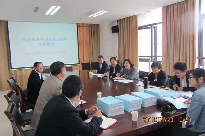 4月20日,宿迁市宿城区卫计委、疾控中心一行6人,来高邮交流学习省级慢病综合防控示范区创建工作。