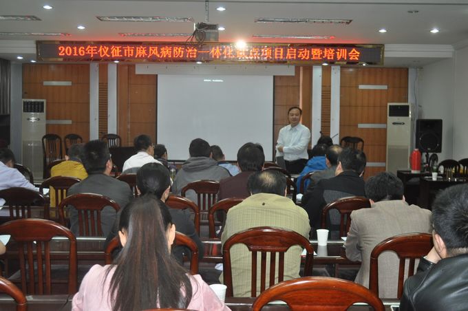 4月20日下午,仪征市召开了2016年麻风病防治一体化试点项目工作启动暨业务培训会,市直医疗单位、南京鼓楼医院集团仪征医院的皮肤科、神经科等相关医生,各镇(中心)卫生院防保组长、外科医生、妇产科、村医生代表等60余人参加了会议,会议由市卫计委疾控科科长张文彪主持。