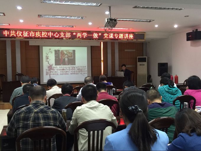 为深入学习贯彻党章党纪和习近平总书记系列重要讲话精神,推进全面从严治党,巩固拓展党的群众路线教育实践活动和“三严三实”专题教育成果,结合市卫计委“两学一做”专题讲座的会议精神,4月22日下午3时,市疾控中心党支部举办全体党员和中层干部“两学一做”专题讲座。