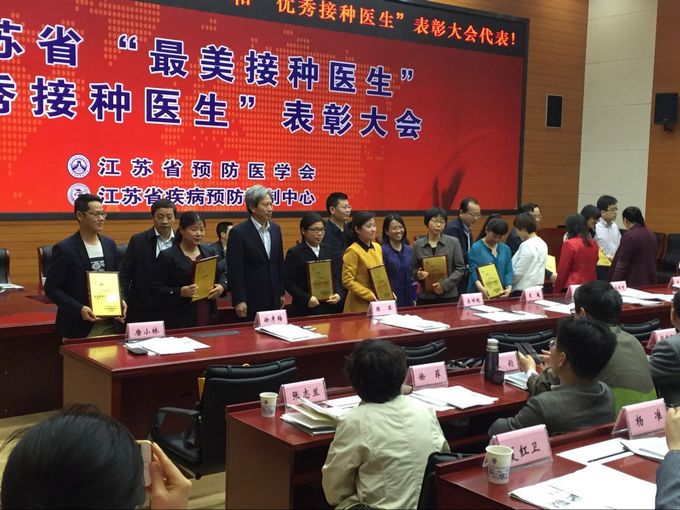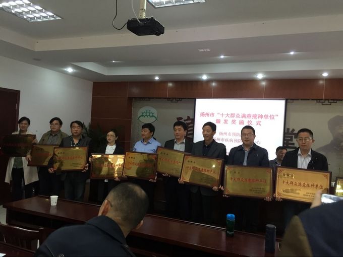 在省预防医学会、省疾病预防控制中心组织评选的”全省最美接种医生”和扬州预防医学会、扬州市疾病预防控制中心组织的“十大群众满意接种单位”评选活动中,广陵区沙头镇社区卫生服务中心仲艳玉同志荣获“江苏省最美接种医生”称号,于4月25日在省疾控中心参加表彰大会;汤汪社区卫生服务中心和曲江社区卫生服务中心荣获扬州市“十大群众满意接种单位”称号,4月23日在汤汪九龙社区中心举行了授牌仪式。