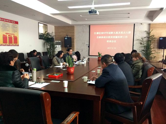 会议对《扬州市2017年适龄儿童及重点人群含麻疹成分疫苗查漏补种活动实施方案》进行培训,重点讲解了本次查漏补种活动的接种对象、工作目标、时间安排、接种现场注意事项以及疑似预防接种异常反应的监测和应急处理等,为提高全区人群麻疹免疫水平、有效控制麻疹疫情的发生和流行,实现消除麻疹的目标打下坚实基础。