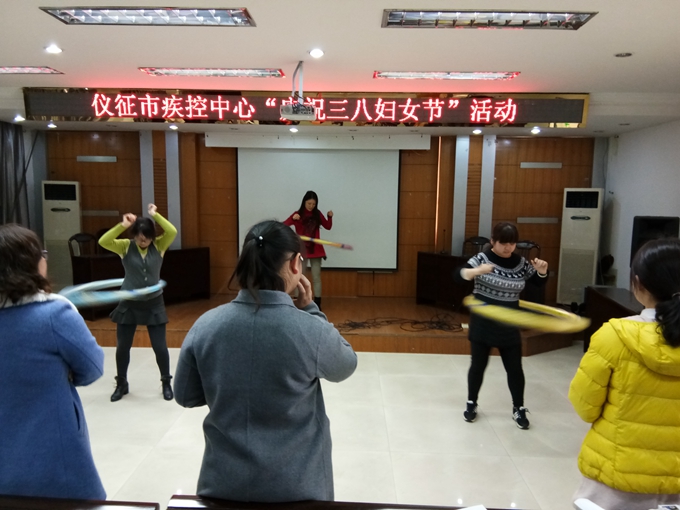 为庆祝“三八”妇女节,打造阳光向上、团结和谐的疾控队伍,提高职工工作积极性,增强职工凝聚力,3月8日下午,仪征市疾控中心开展了以的“低碳、活力、健身”为主题的女工跳绳、呼啦圈比赛活动,共30名女工参加。