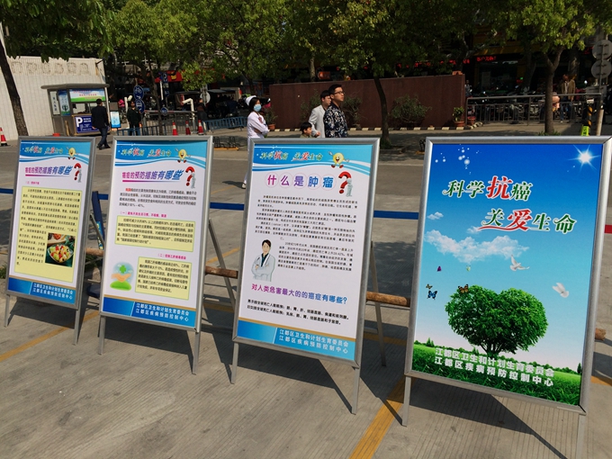 江都区疾控中心健教所还精心筹划“科学抗癌、关爱生命”健康展板在基层单位进行巡展;其他各级医疗单位也积极响应,开展多种形式的宣传活动。