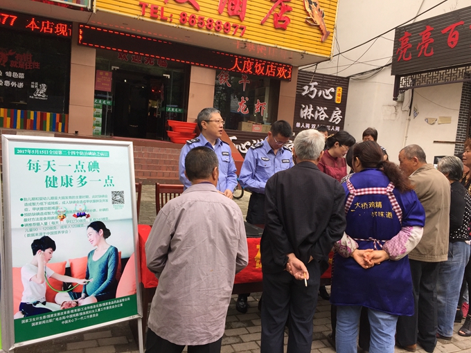 2017年5月15日是全国第二十四届“防治碘缺乏病日”。15日上午,区疾控和盐务部门会同邵伯镇卫生院相关人员,在邵伯镇中心大街开展现场宣传,今年的主题是:“每天一点碘,健康多一点”。活动通过开展宣传教育、宣传咨询等活动,以宣传条幅、展板、宣传资料等方式向过往群众宣传碘缺乏病防治知识,疾控和盐业部门还组织了一批小礼品(碘缺乏病无纺布宣传袋、围裙、洗涤蔬果专用盐)现场发放,活跃宣传气氛;活动强化了碘缺乏病危害和食用合格碘盐的重要性,增强了群众的科学补碘的意识。本次活动共出动宣传人员12人次,发资料1000多份,宣传礼品400余份。