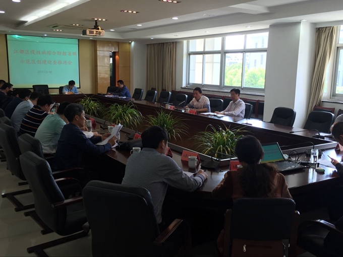 为推进江都区慢性病综合防控示范区创建工作进度,采取有效措施,协调解决前期示范创建工作中存在的问题,加大工作力度,全力推进省级慢性病综合防控示范区创建工作,争取今年6月顺利通过省级验收。5月16日,区政府组织召开区慢性病防控示范区创建迎查推进会议。会议由区政府办主任谢东主持,宣传部、卫计委、城建局、教育局、市场监督管理局分管领导,丁沟镇、仙女镇、宜陵镇分管镇长及城区示范单位主要负责人等20余人出席了会议。