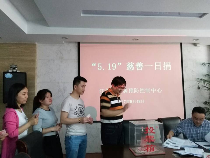 江都区疾控中心积极开展“5.19慈善一日捐”活动。践行公益、传递爱心是现代社会的基本价值。在我们感受美好生活,沐浴幸福阳光的同时,将慈善精神融入单位文化建设,把参与慈善作为履行社会责任。此次活动党员干部带头,广大职工积极参与,共捐款11200元。