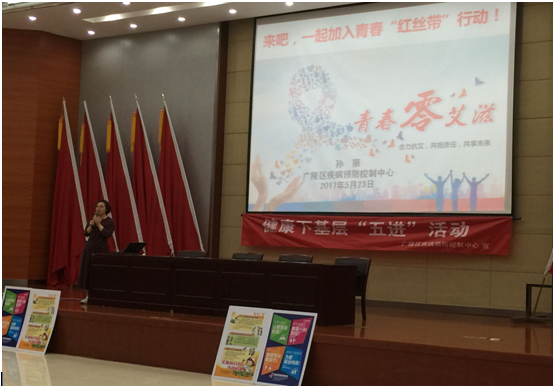 为普及高校学生预防艾滋病知识,倡导红丝带精神和积极向上的青春理念,促进学生身心健康发展,5月23日下午,广陵区疾控中心、曲江街道社区走进扬州市技师学院,为在校青年学生开展了预防艾滋病健康知识讲座。讲座由区疾控中心疾控二科孙丽科长主讲。