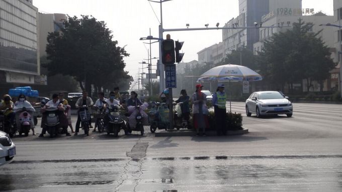志愿者们分别在上午8:00到9:00的早高峰和下午5:30到6:30的晚高峰在县广电总台路口做文明交通引导。尽管烈日炎炎,但志愿者仍然坚守岗位。在执勤过程中,社区志愿者发现该路口车流繁多,不走斑马线的行人众多。针对这种情况,志愿者通过吹口哨,举落小红旗,为过往行人做指引,保证行人都能安全过马路,