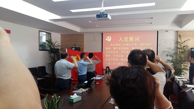 6月29日下午,江都区疾控中心所属三个支部党员共43人在会议室集中,开展“重温入党誓词,坚定理想信念”主题教育活动,活动由中心副主任胡宏根主持。