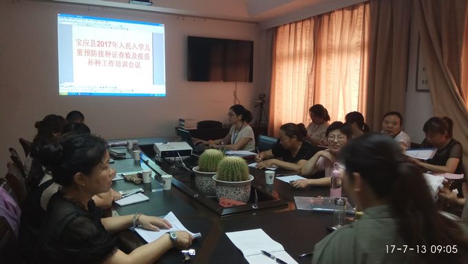 为做好宝应县入托入学儿童预防接种证查验和疫苗补种工作,7月13日上午,宝应县在县疾控中心二楼会议室召开了2017年度入托入学儿童预防接种证查验及疫苗补种工作培训会议,各镇免疫规划人员等相关人员共16人参加了培训。