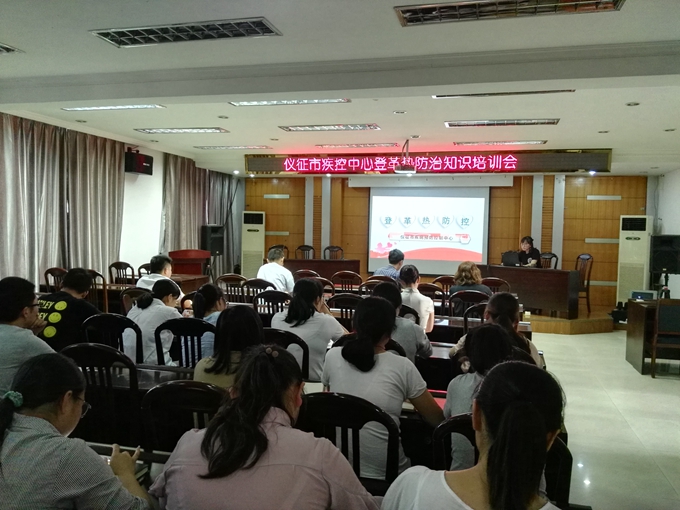 3476 为进一步强化全体职工的专业知识,提升应对登革热疫情的预防和应急处置能力,9月15日下午,仪征市疾控中心急性传染病防制科焦洁副科长对全体职工进行了登革热防控知识培训。
