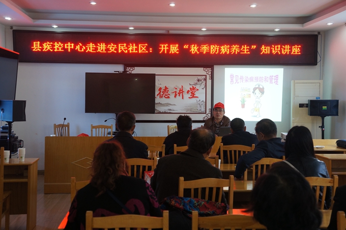 此次讲座以秋季如何养生、秋季常见传染病预防知识为主要宣讲内容,县疾控中心副主任技师高迎春、传染病防制科科长李玉来还以现场答疑等形式来强化授课效果、宣传健康知识,精彩丰富的知识内容得到了广大居民们的一致好评。