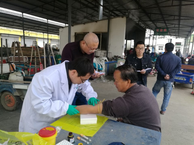 10月26日早晨,高邮市疾控中心传染病防制科和检验科相关专业人员一行八人分2个组分别来到位于环高邮湖的送桥镇黄圩村卫生室、送桥镇农贸市场、送桥镇肯乐食品加工厂、送桥镇张公渡养鹅场对禽类散养户、活禽贩卖、屠宰人员、规模养殖场禽类饲养人员进行了血清标本采集,并对部分禽类外环境样品进行了采集,计采集禽类职业暴露人群血清77人份,禽类外环境标本10份,顺利完成了秋季禽类和职业暴露人群监测采样任务。