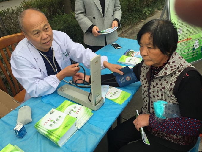 活动现场摆放宣传戗牌6块,设咨询台进行健康生活方式指导并发放6种以糖尿病为主的防治宣传单以及定量水杯、腰围尺等宣传用品,从而使居民更多关注肥胖对于糖尿病的影响。为提高居民的参与度,还在活动现场安排人员为群众测量血压、血糖,受到周边居民的一致好评。在两个多小时的活动中,共为50余人提供了测血糖、120余人测血压的服务,接受健康咨询近200余人次,发放各类宣传资料和物品800多份。