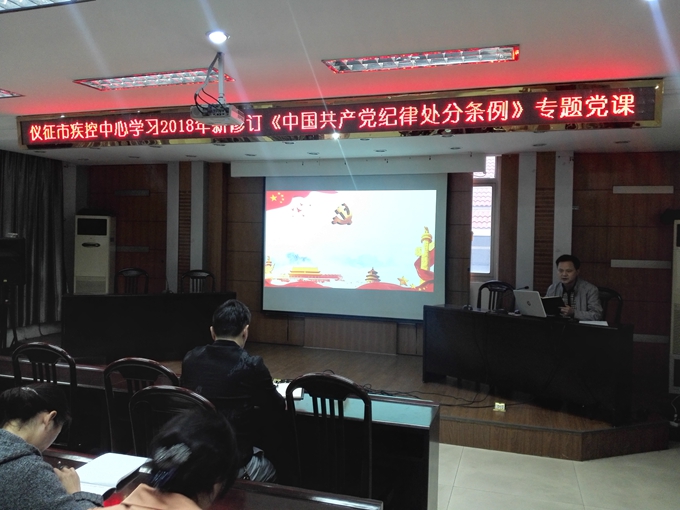 为进一步提升干部职工廉洁自律意识和拒腐防变能力,10月19日下午,仪征市疾控中心举办党风廉政建设专题党课,由党支部副书记李子林讲授2018年新修订《中国共产党纪律处分条例》。市疾控中心全体职工参加了会议。