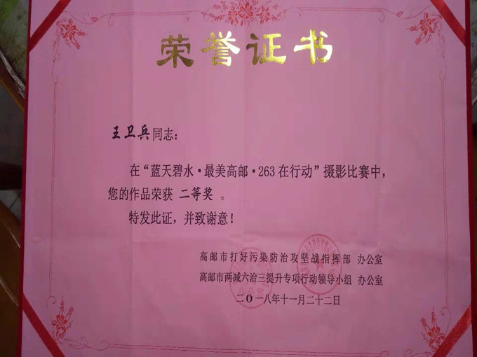 本次摄影大赛收到近200名摄影爱好者共计1000多幅摄影作品。经过“网络投票”和“评委投票”两个环节,最终20幅作品脱颖而出,分获一、二、三等奖,其中高邮市疾控中心王卫兵创作的一幅摄影作品名列其中喜获二等奖。