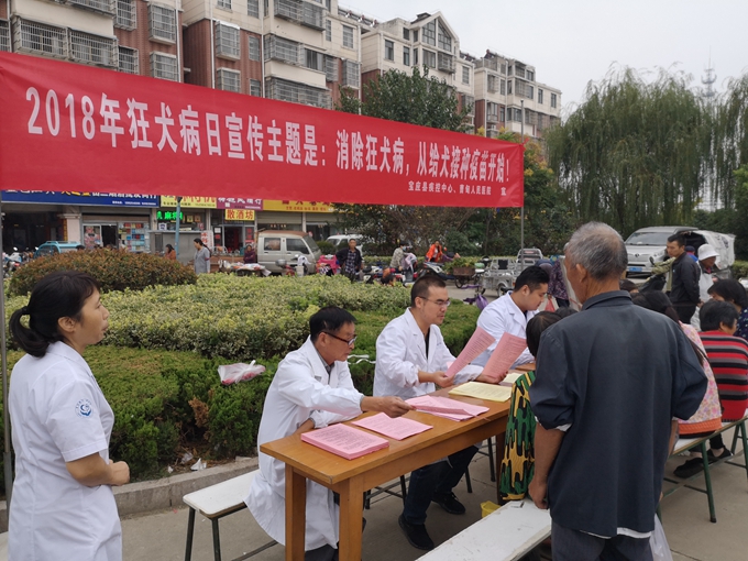 为提高宝应县辖区居民对狂犬病防治工作的重视,普及狂犬病防治知识,提高群众对狂犬病防治知识的知晓率,是日上午,该县疾控中心联合曹甸镇中心卫生院围绕今年的宣传主题,通过展板、宣传手册、现场咨询等多种形式开展关于狂犬病危害、人群暴露后预防处置常识的宣传教育活动。