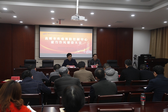 3月15日下午,高邮市疾控中心召开能力作风建设工作会,深入学习贯彻落实高邮市纪委十一届三次全会和高邮卫计系统党建工作暨作风建设大会精神,从严部署2018年中心能力作风建设工作。