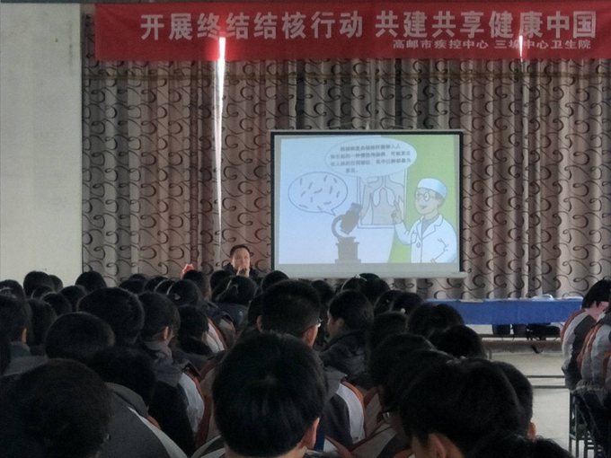 结核病是严重影响人群健康的重大传染病,而校园结核病防治知识宣传是结核病防控的重要环节,做好学生群体的结核病防控,是提高学生自我保护能力的重要举措。3月21日,在第23个“世界防治结核病日”来临之际,高邮市疾控中心结核病防治专家专程赶赴高邮市三垛高中和400余名同学们一起度过了一堂主题为“开展终结结核行动,共建共享健康中国”的结核病防治知识健康教育课。