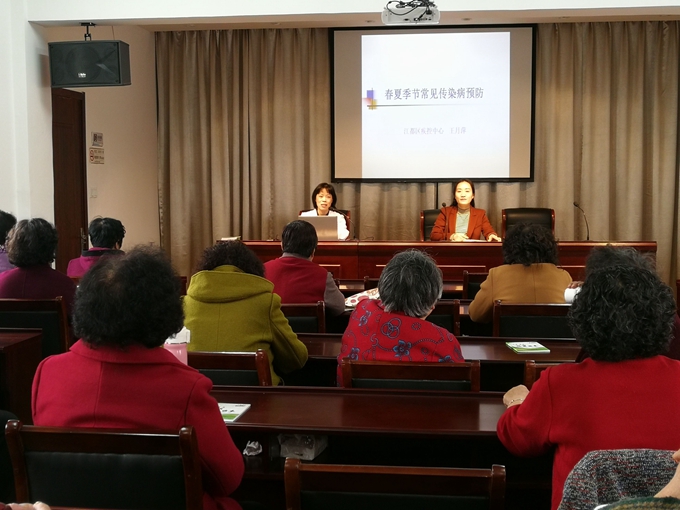 2018年4月13日下午,江都区疾控中心疾控科传染病防治专业人员走进仙女社区,为社区居民宣讲春夏季常见传染病的防治知识。