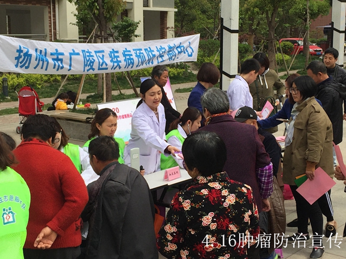 2018年4月16日,广陵区疾控中心走进汤汪花园中心广场,开展了以“科学抗癌,关爱生命---抗癌路上,你我同行”为主题的宣传活动。本次活动采取了广场宣传与科学讲座相结合的方式,旨在倡导全社会积极行动起来,传播科学防癌理念,普及抗癌健康知识,提高群众癌症防控意识。