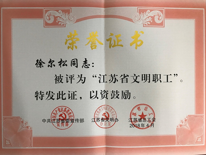 由中共江苏省委宣传部、省文明办、省总工会联合在全省职工中组织开展的第十五届“江苏省十佳文明职工”和“江苏省文明职工”评选活动结果近日揭晓。经基层推荐、媒体公示、群众投票和专家评审等程序,全省115名同志获授“江苏省文明职工”称号,高邮市疾控中心徐尔松名列其中。