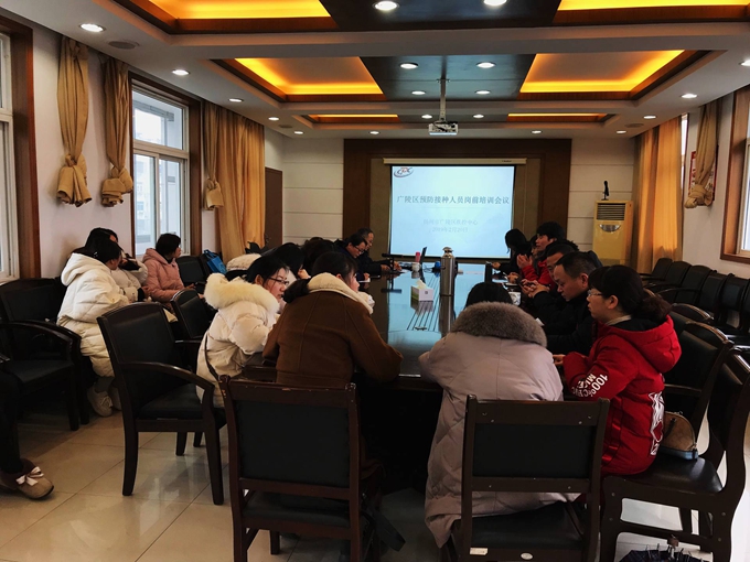 2月20日下午,广陵区卫计委组织全区25名拟申请预防接种上岗证的人员,在区疾控中心进行了岗前培训。