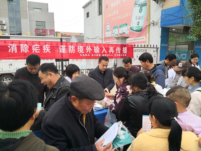2019年4月26日是第12个“全国疟疾宣传日”,为增强居民疟疾防病知识和自我保护意识,切实保障人民身体健康。是日上午,扬州市血办、市疾控中心联合宝应县血地防办公室、县卫健委、县疾控中心、泾河镇卫生院在泾河镇中心卫生院门前开展4.26疟疾宣传日活动。