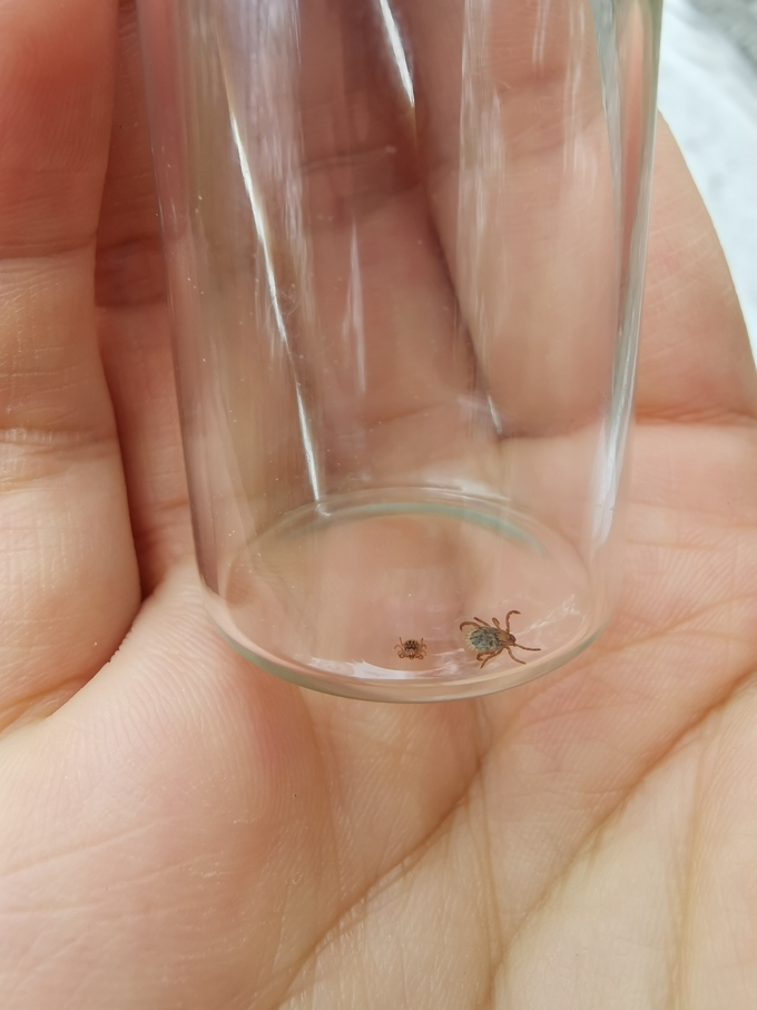 为掌握蜱虫种类、密度和季节消长规律,获得蜱传播疾病风险评估和预测预警所需蜱基础数据,4月16日上午7时,扬州市疾控中心急传科罗直智副科长带领3名工作人员,来仪征现场指导开展蜱虫监测工作。