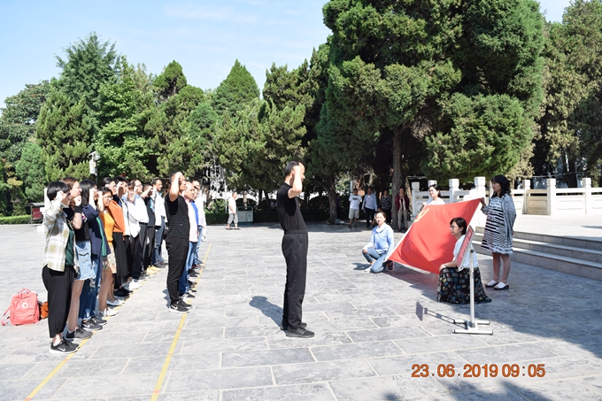 次日,大家来到焦裕禄烈士纪念园,怀着无比崇敬的心情举行了简洁而庄重的拜谒仪式,向焦裕禄同志陵墓敬献花篮,瞻仰焦裕禄烈士墓,并重温入党誓词。