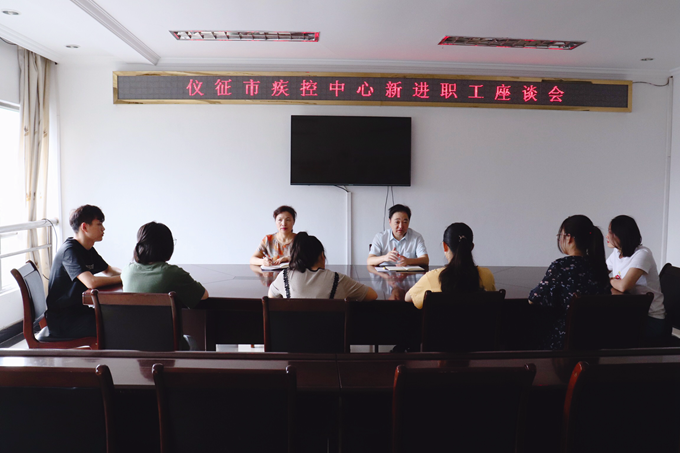 8月30日上午,仪征市疾控中心在三楼会议室组织2019年新进职工座谈会,会议由市疾控中心副书记马久华主持。