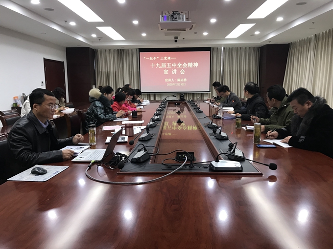 中心主任陈志勇同志深入领学“中国共产党第十九届中央委员会第五次全体会议”主要精神,从三个方面深刻解读了五中全会的丰富内涵和精神实质,为在职党员作上了一堂生动的主题党课。陈志勇主任要求大家把思想和认识统一到了党中央对国际国内形势的分析判断上来,统一到了关于发展的指导思想、必须遵循的原则、主要目标和重大决策部署上来。党员同志们纷纷表示,要坚持以习近平总书记的指示精神为指导,增强“四个意识”、坚定“四个自信”、做好“两个维护”,切实推动党的十九届五中全会部署的各项任务落地生根。