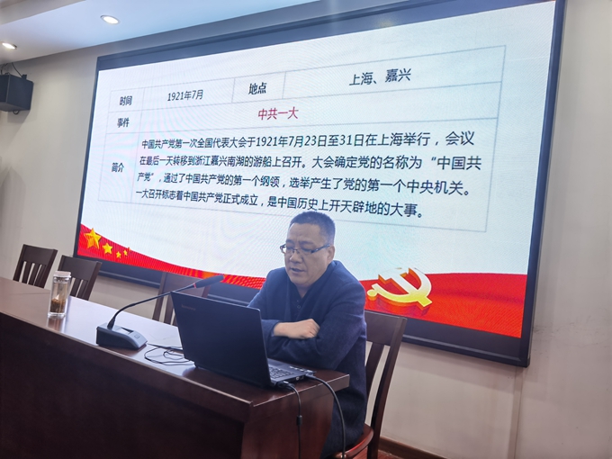最后,吴志明书记给全体参会人员上了一堂生动的党课。党课讲解了新民主主义革命时期我党发生重大事件,通过表格的形式将时间、地点、事件、简介四个部分进行归纳,使大家在学习的过程中更容易理清历史的脉络,真正做到一目了然。