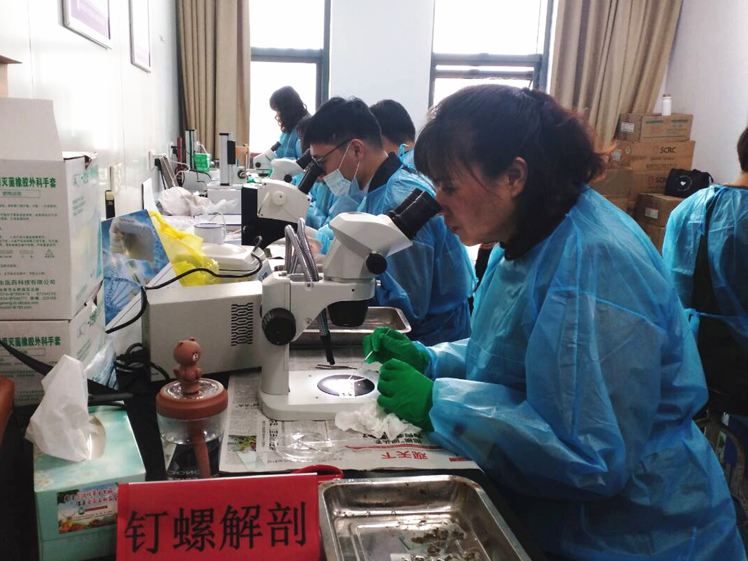 为精准掌握扬州市螺情现状,评估血吸虫病感染风险,4月12-13日,扬州血地办组织各县(市、区)骨干专业力量共20名来邮开展钉螺集中解剖工作。