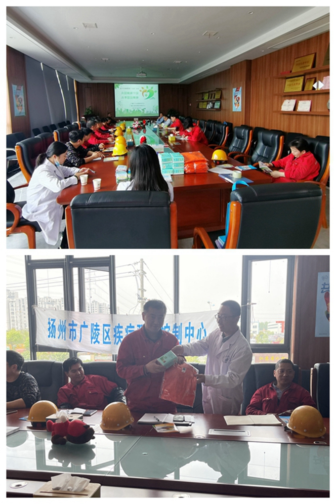 4月25日至5月1日是第19个全国《职业病防治法》宣传周。为保护劳动者健康,深入宣传贯彻《职业病防治法》,进一步普及职业病防治知识, 4月28日下午,区卫健委、广陵区经济开发区管委会、区疾控中心等部门在江苏宏昌天马物流装备有限公司开展了以“共创健康中国,共享职业健康”为主题的宣传活动。