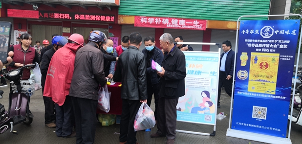 今年5月15日是我国第28个“防治碘缺乏病日”。5月14日上午,高邮市疾控中心、市场监督管理局,卸甲中心卫生院在卸甲镇共同举办主题为“科学补碘、健康一生”的现场宣传活动。