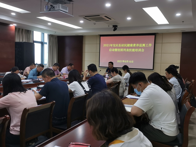 为提升城乡居民健康素养水平,客观掌握宝应县居民健康素养水平变化趋势。经前期市级抽样,宝应县安宜镇、氾水镇、曹甸镇已被确认为今年市级城乡居民健康素养监测点。为确保监测工作顺利实施,6月15日上午,2021年宝应县居民健康素养监测工作启动暨绘图列表技能培训会议在该县疾控中心四楼会议室召开。安宜镇、氾水镇、曹甸镇社会事业局局长,卫计助理,卫生院分管院长、防保所长、健教医生,各监测点村(居)委会主任、卫生室室长,县疾控中心分管领导及职能科室相关人员共计33人参加了会议。