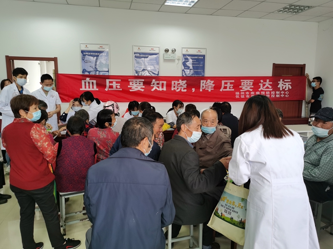 2021年10月8日是第24个“全国高血压日”, 仪征市疾病预防控制中心联合扬州市疾病预防控制中心、新城镇卫生院,紧紧围绕 “血压要知晓,降压要达标”这一主题,在新城镇新北社区开展了“全国高血压日”宣传活动。张建彬副主任就高血压发病机制、治疗原则、预防措施等相关内容向群众做了详细的讲述和解答,新城镇卫生院工作人员现场为群众测量了血压、空腹血糖,并将高危人群记录在册。现场共向群众发放宣传材料500余份,提供咨询服务100余人次。