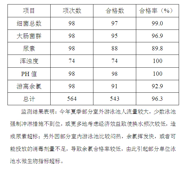 市区13家游泳池卫生监测结果(2015年7-8月)