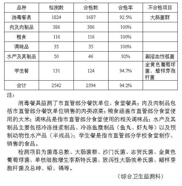 扬州市食品安全卫生监测质量季报(2014年10月-12月)