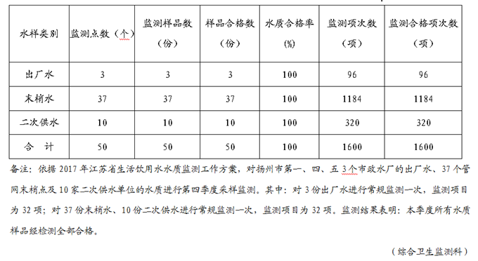 2017年第四季度扬州市城市生活饮用水水质卫生监测情况统计表